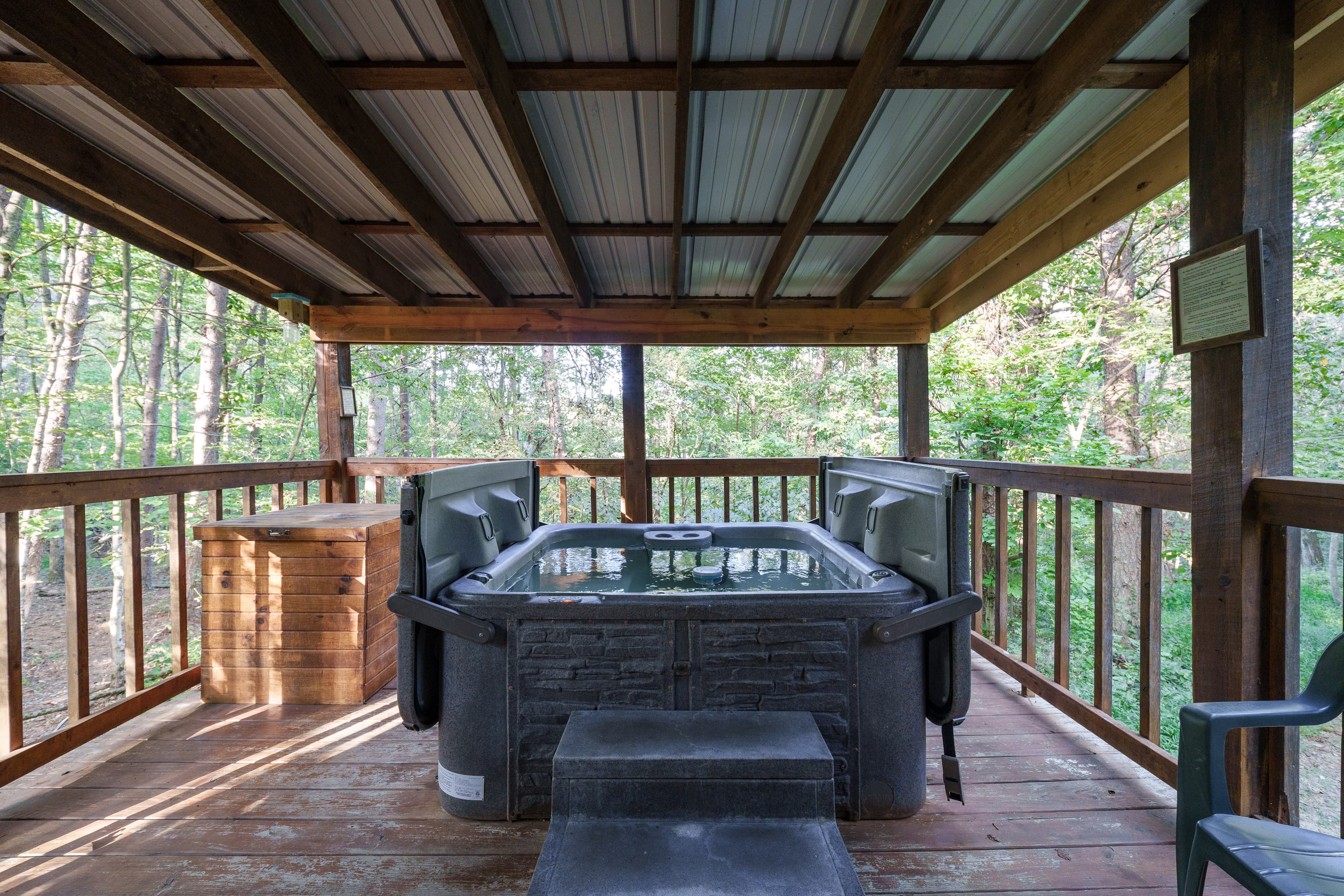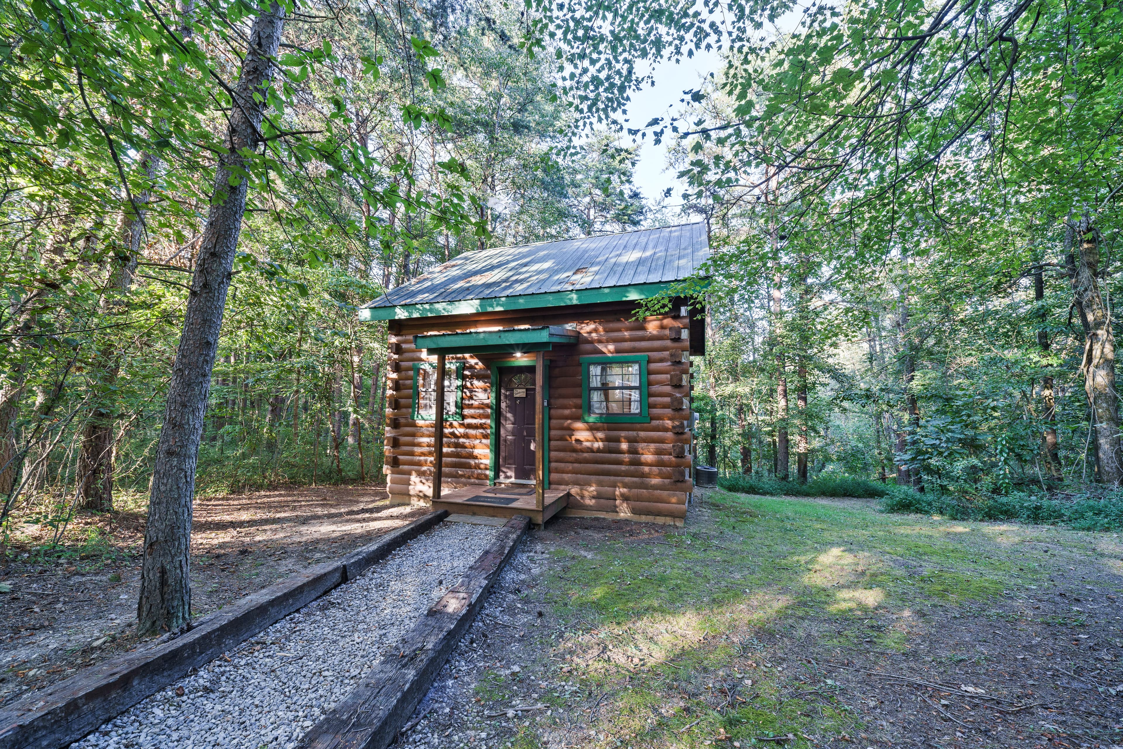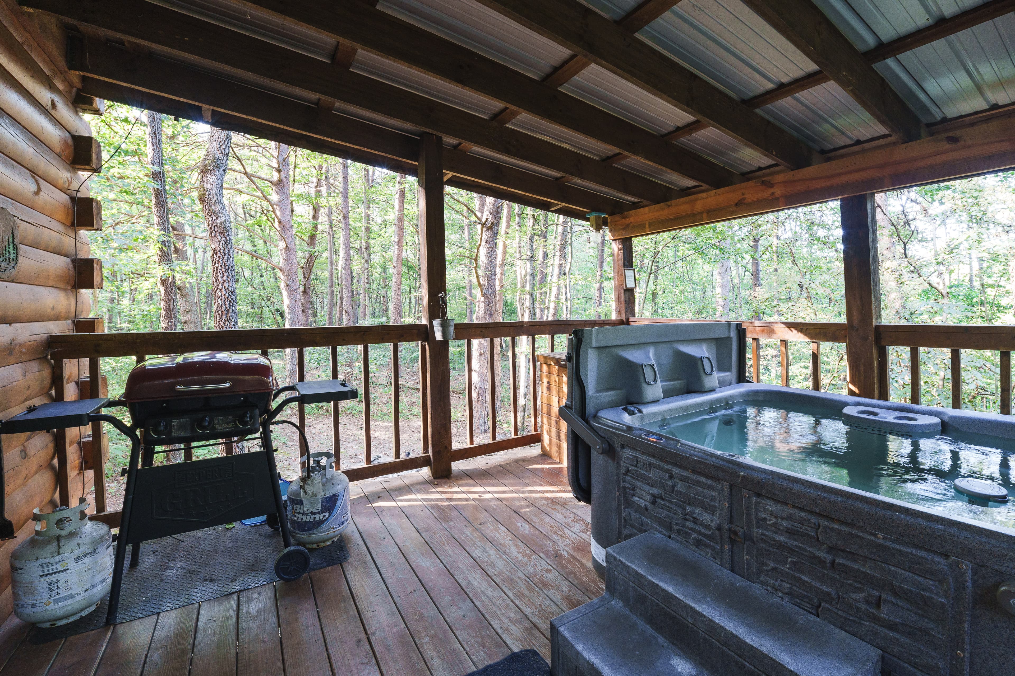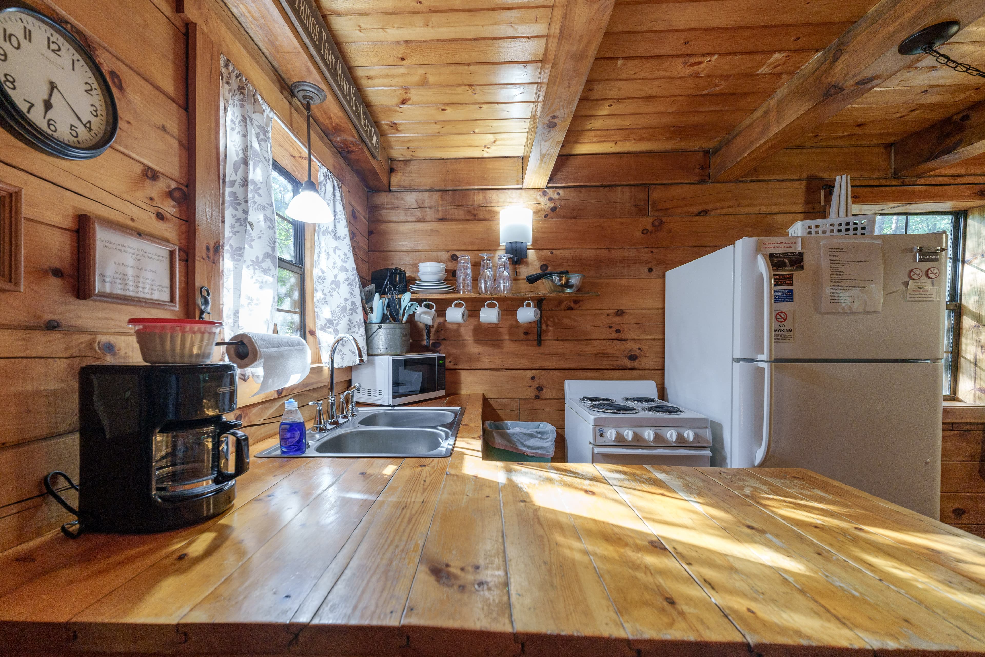 NOT PET FRIENDLY. The Retreat is a two person log cabin with an open loft bedroom and queen-size bed. This cabin has a hot tub, electric fireplace, ceiling fan, central heat/air, gas grill, a standard kitchen with a drip coffee maker, Starlink wifi with streaming Tv. The Retreat is located at our Bishop's Ridge location off Fairview Rd.