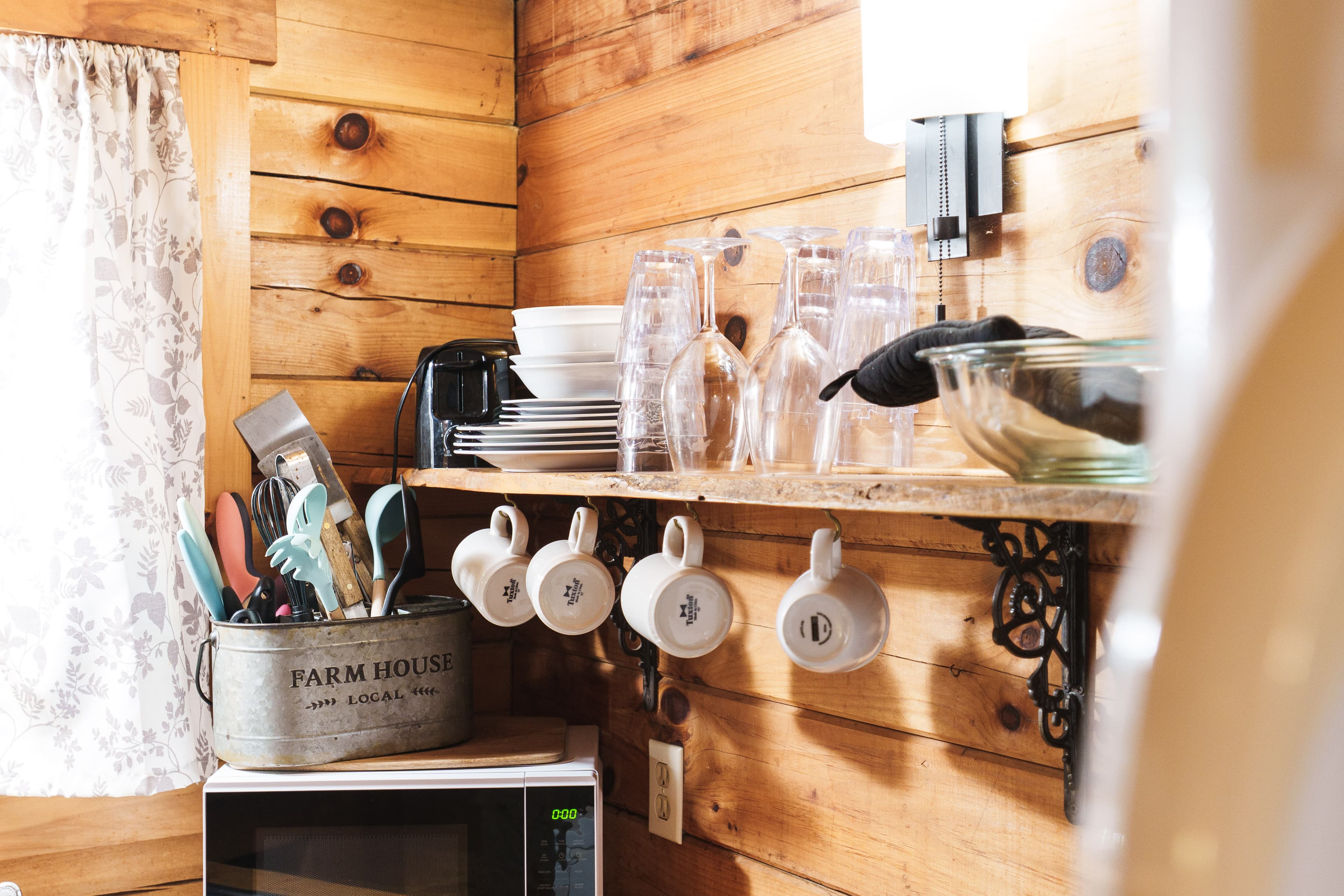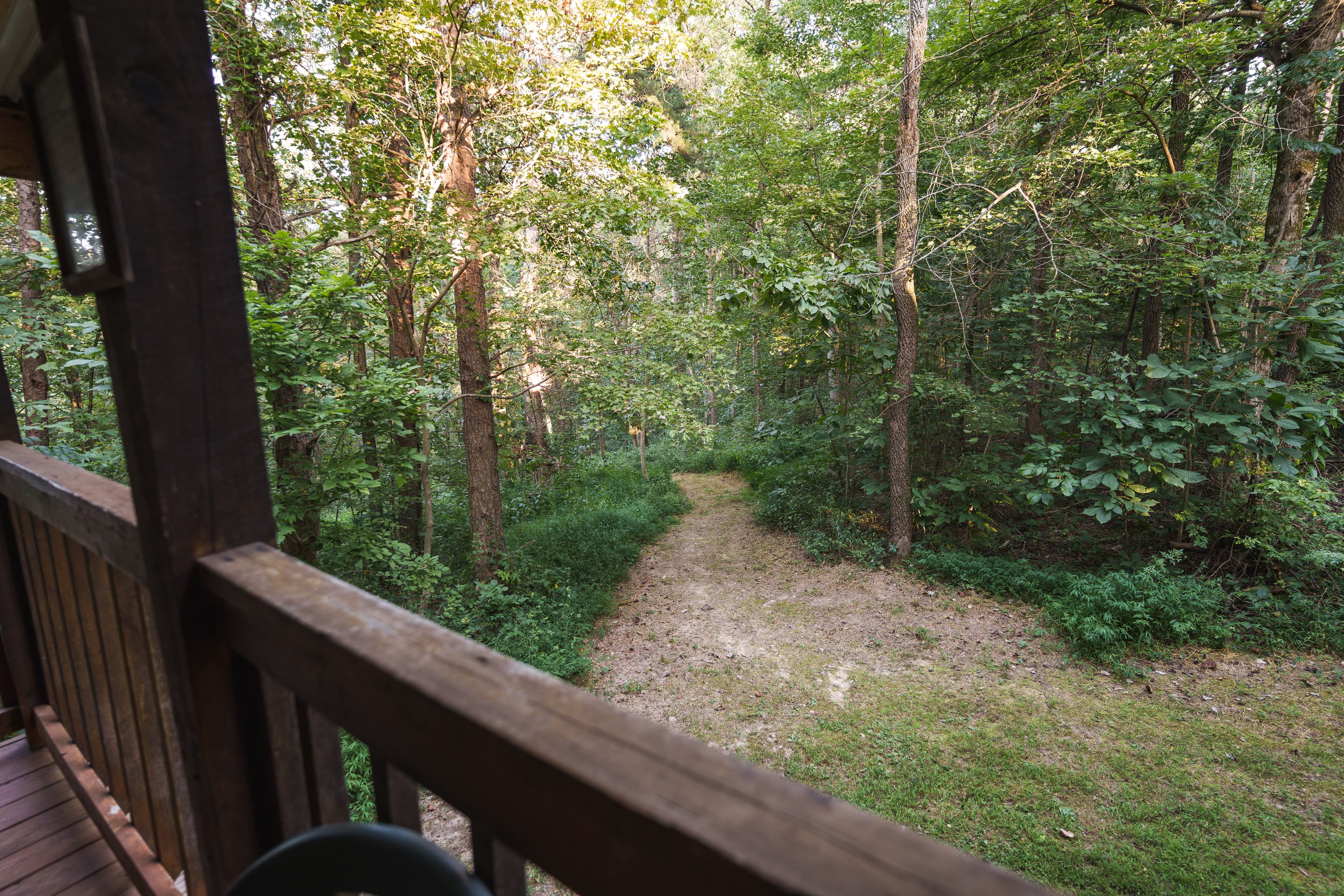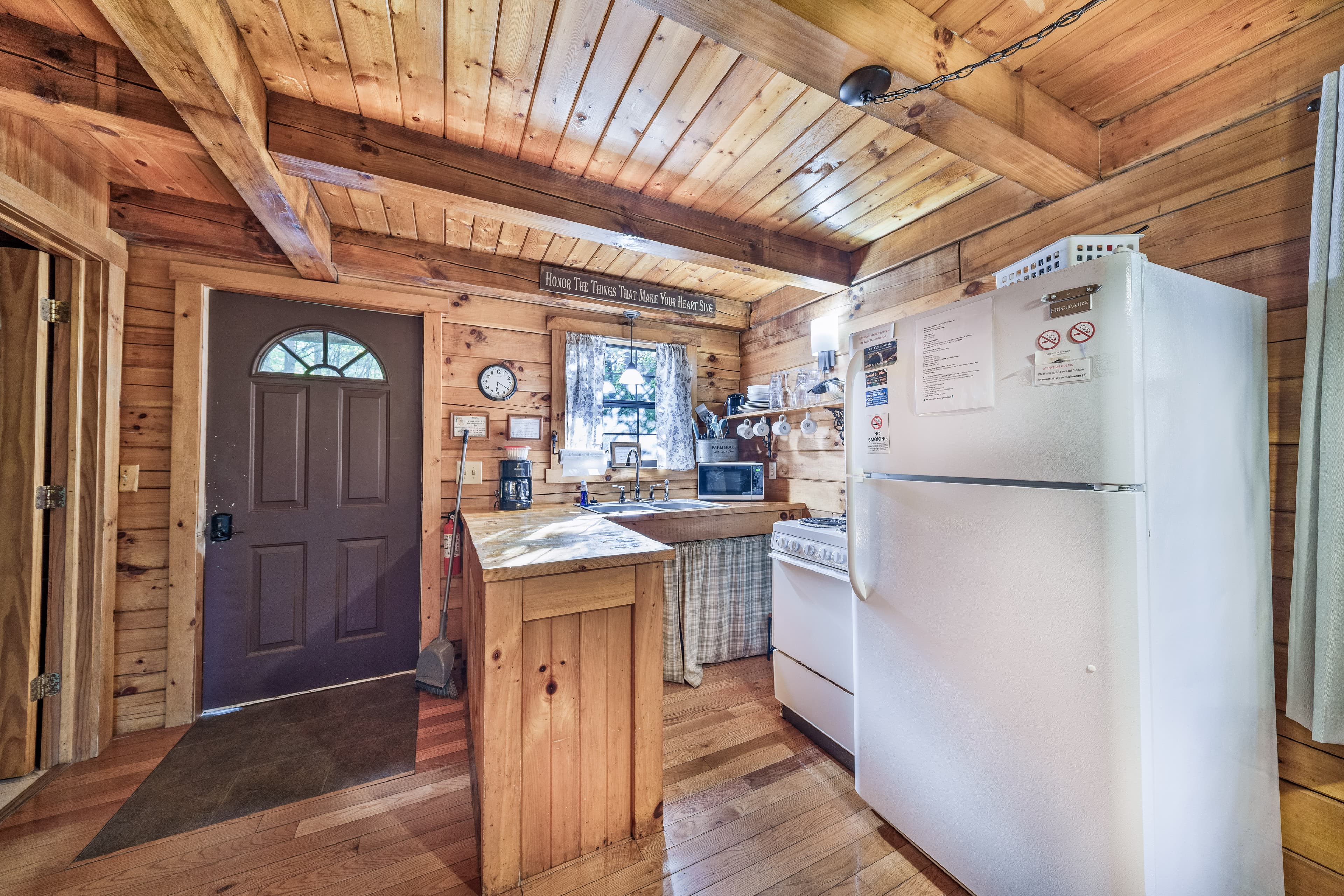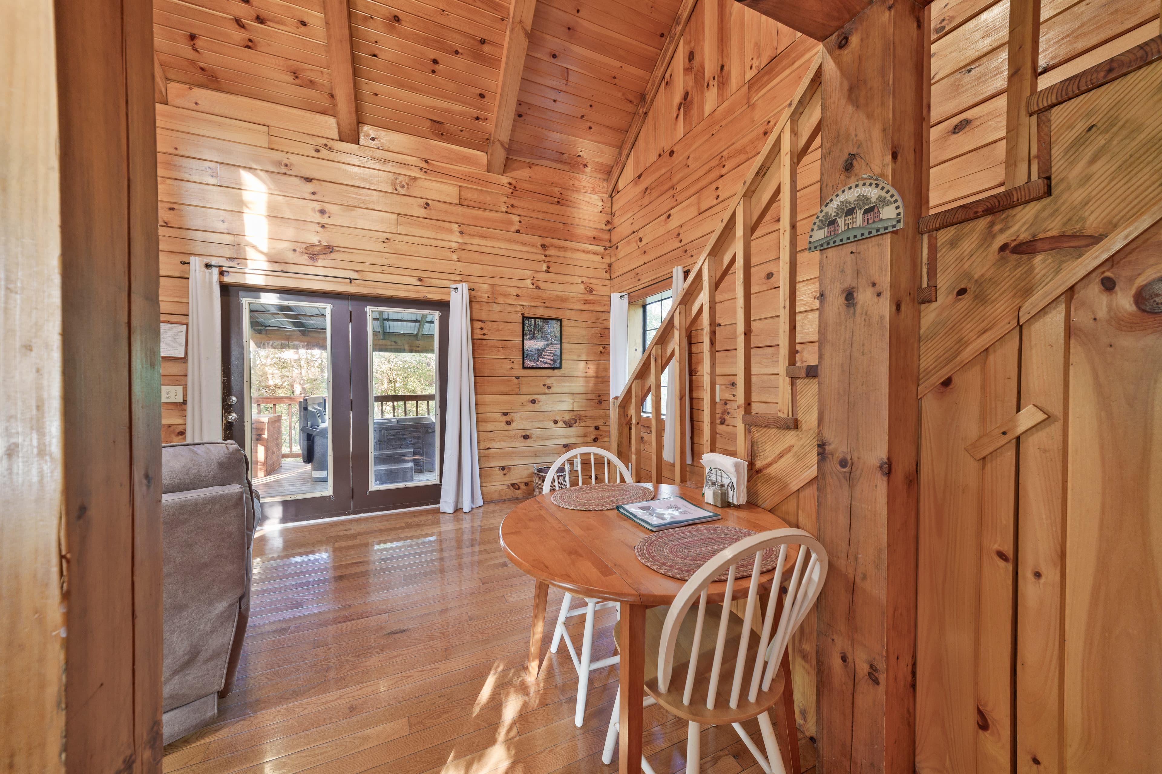 NOT PET FRIENDLY. The Retreat is a two person log cabin with an open loft bedroom and queen-size bed. This cabin has a hot tub, electric fireplace, ceiling fan, central heat/air, gas grill, a standard kitchen with a drip coffee maker, Starlink wifi with streaming Tv. The Retreat is located at our Bishop's Ridge location off Fairview Rd.