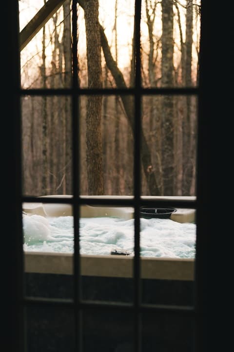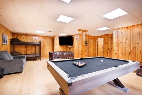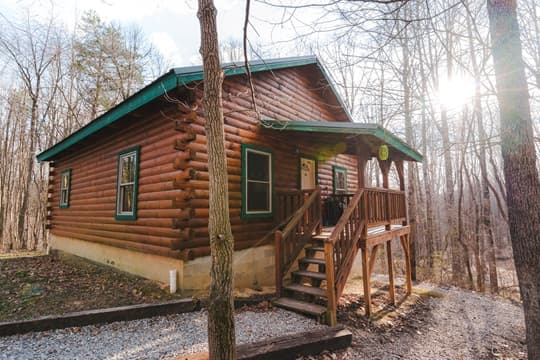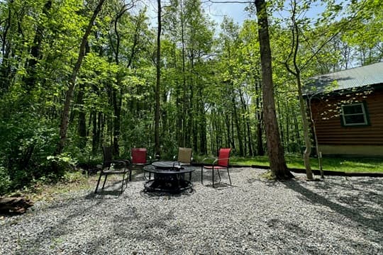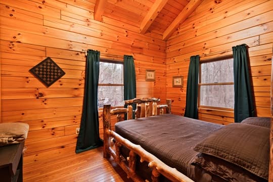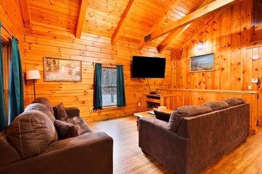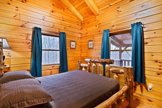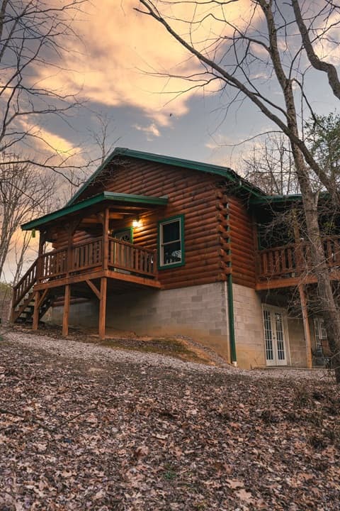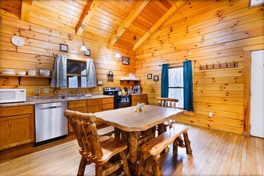 PET FRIENDLY. The Whispering Woods cabin is a great family or group retreat at our Bishop's Ridge Location off of Fairview Rd. It comfortably sleeps 8-9 guests. Their are three private queen size bedrooms, twin over twin bunk beds and a twin pull out sofa bed. Two full size bathrooms, one upstairs and one downstairs. This cabin is equipped with a fooseball table, pool table, hot tub, gas grill, firepit, starlink wifi with streaming tv's for your enjoyment. The kitchen is fully stocked and you may step outside to the deck to enjoy your dinner outside in nature.