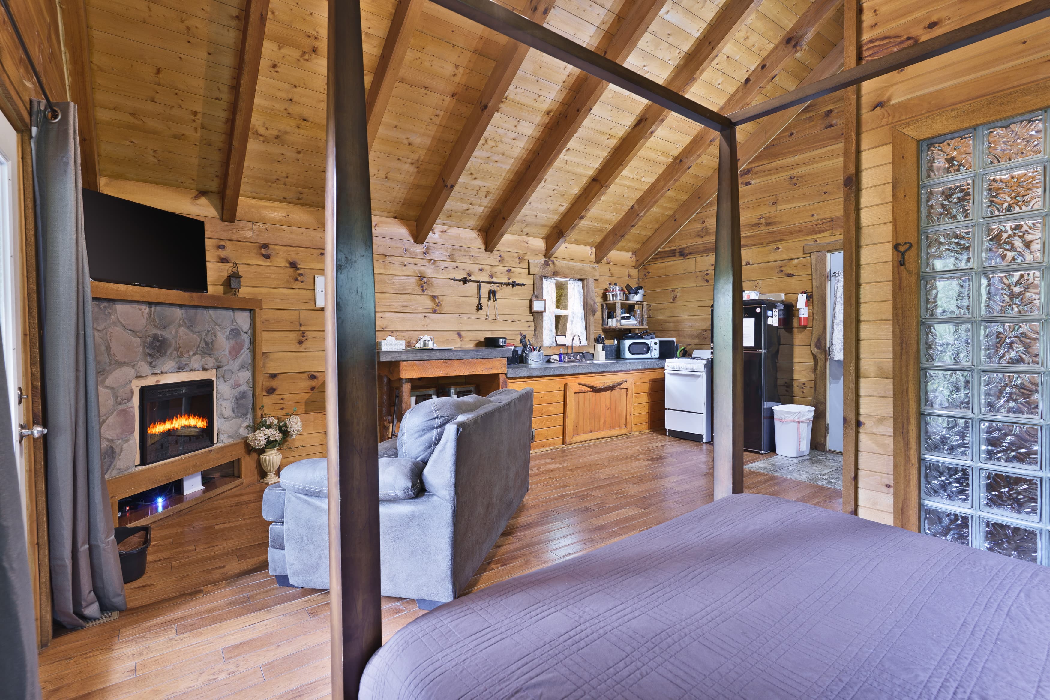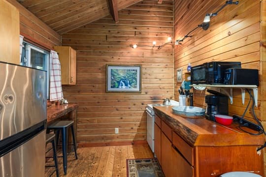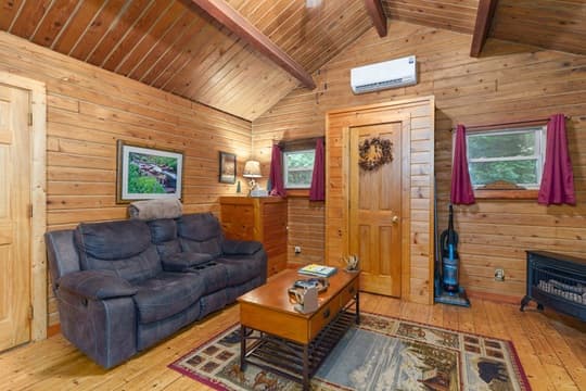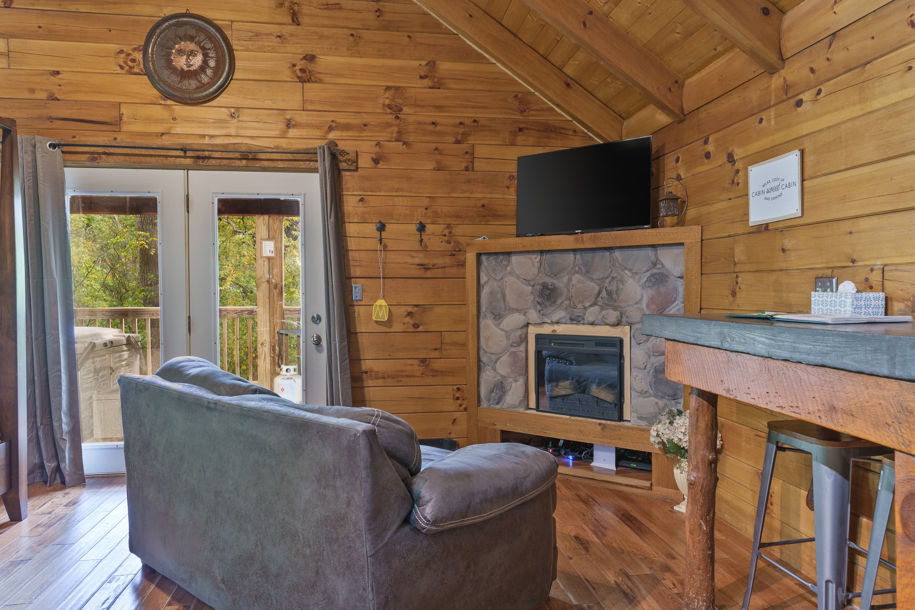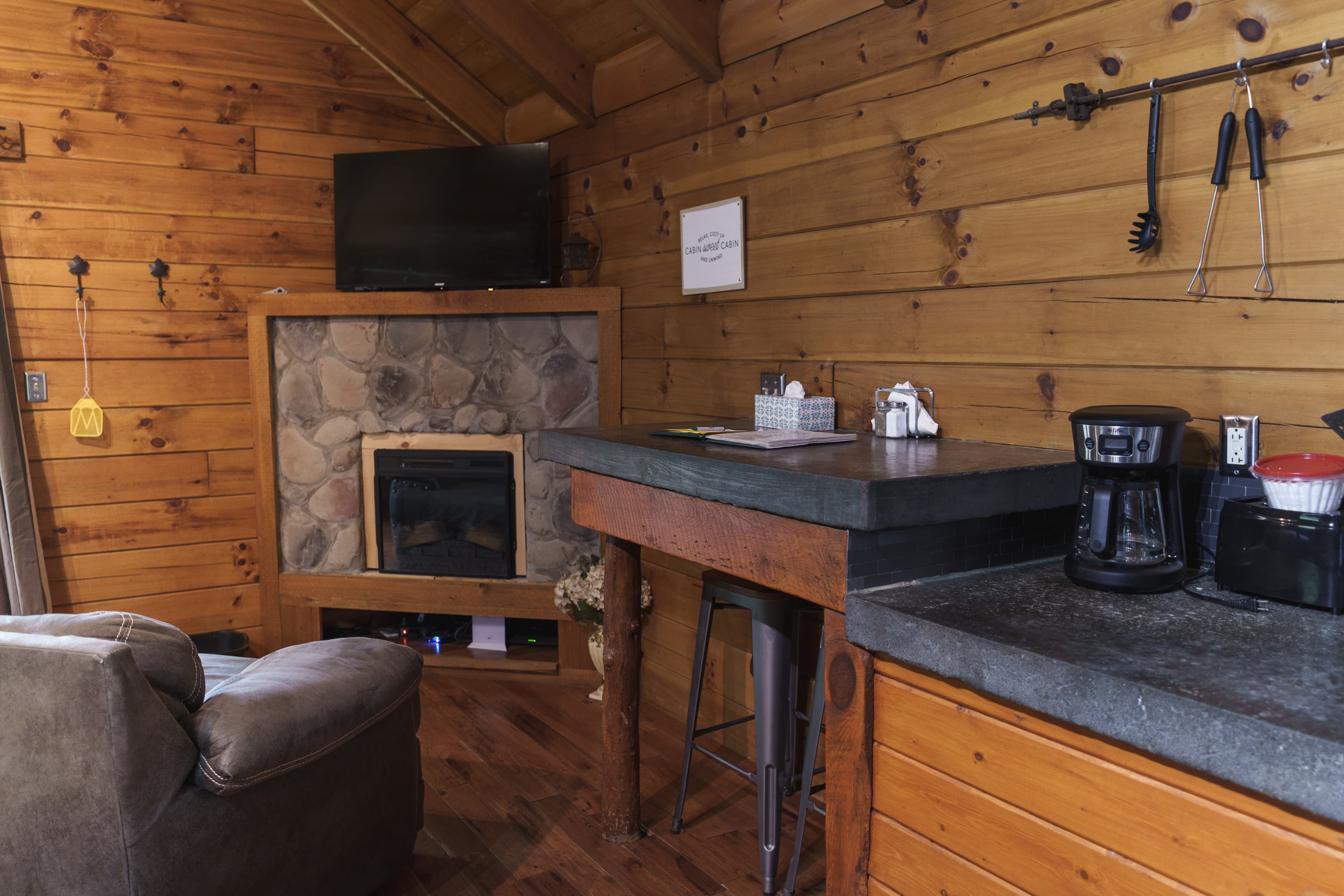 PET FRIENDLY. Bliss is a comfortable one level cabin for two guests that offers a queen size bed and walk in tile shower. The cabin features starlink WIFI, Smart TV with streaming only, stone electric fireplace and a standard kitchen with a drip style coffee maker. NOTE: Four-wheel drive recommended if available and is REQUIRED in inclement weather. DISCLOSURE: Outside security camera on the front porch.