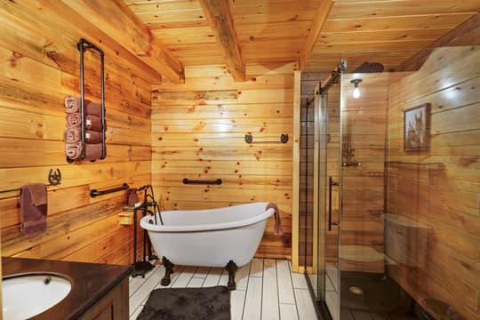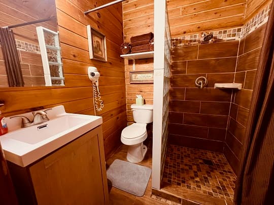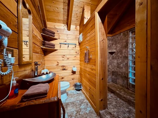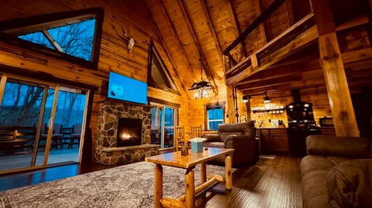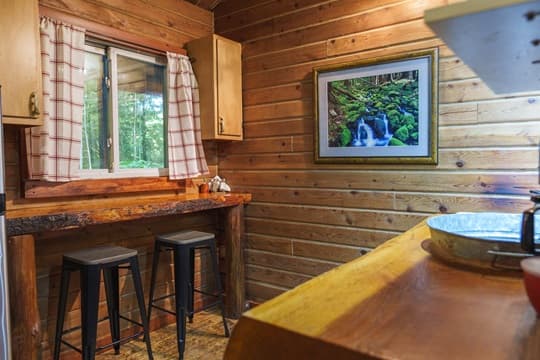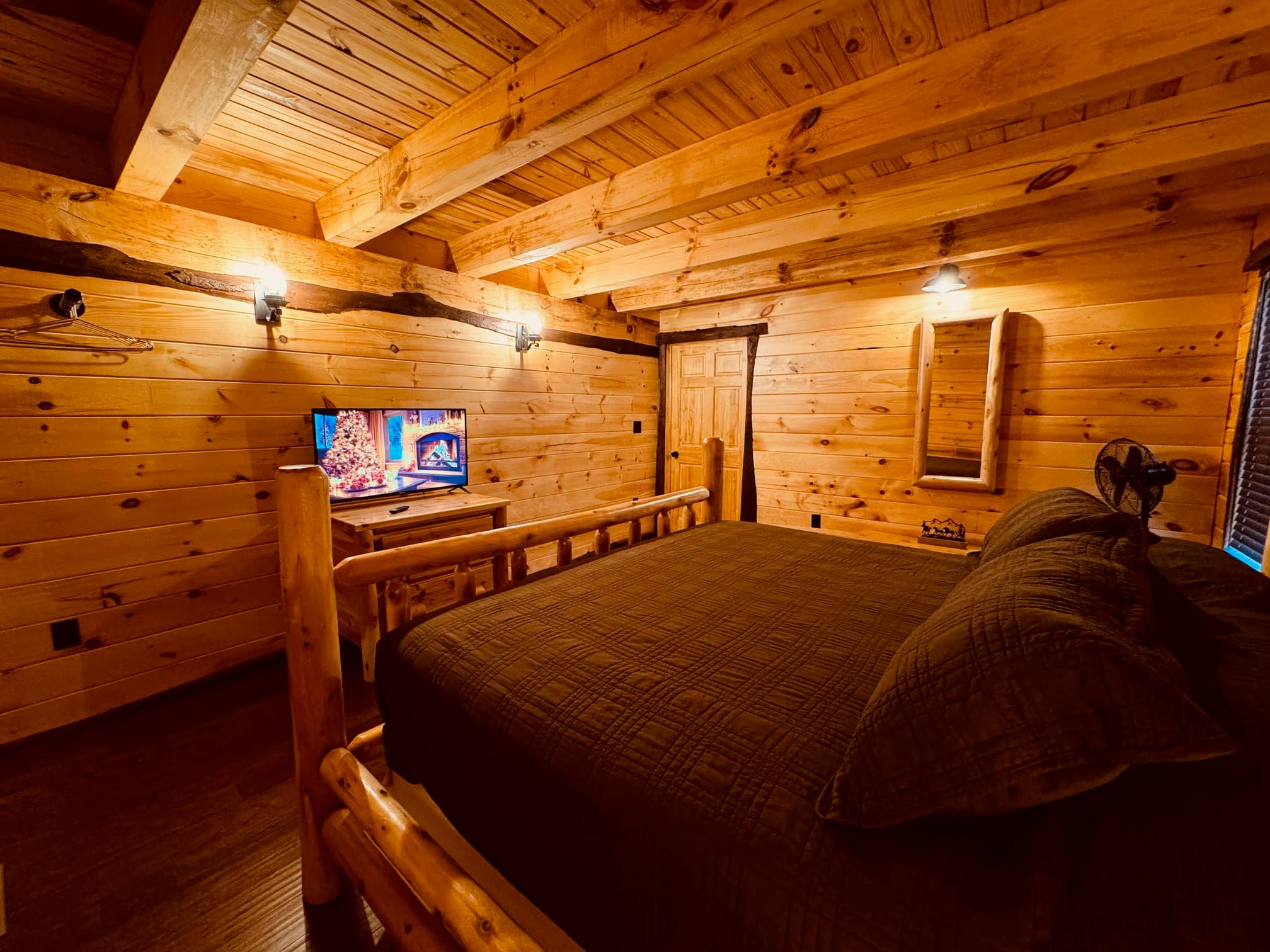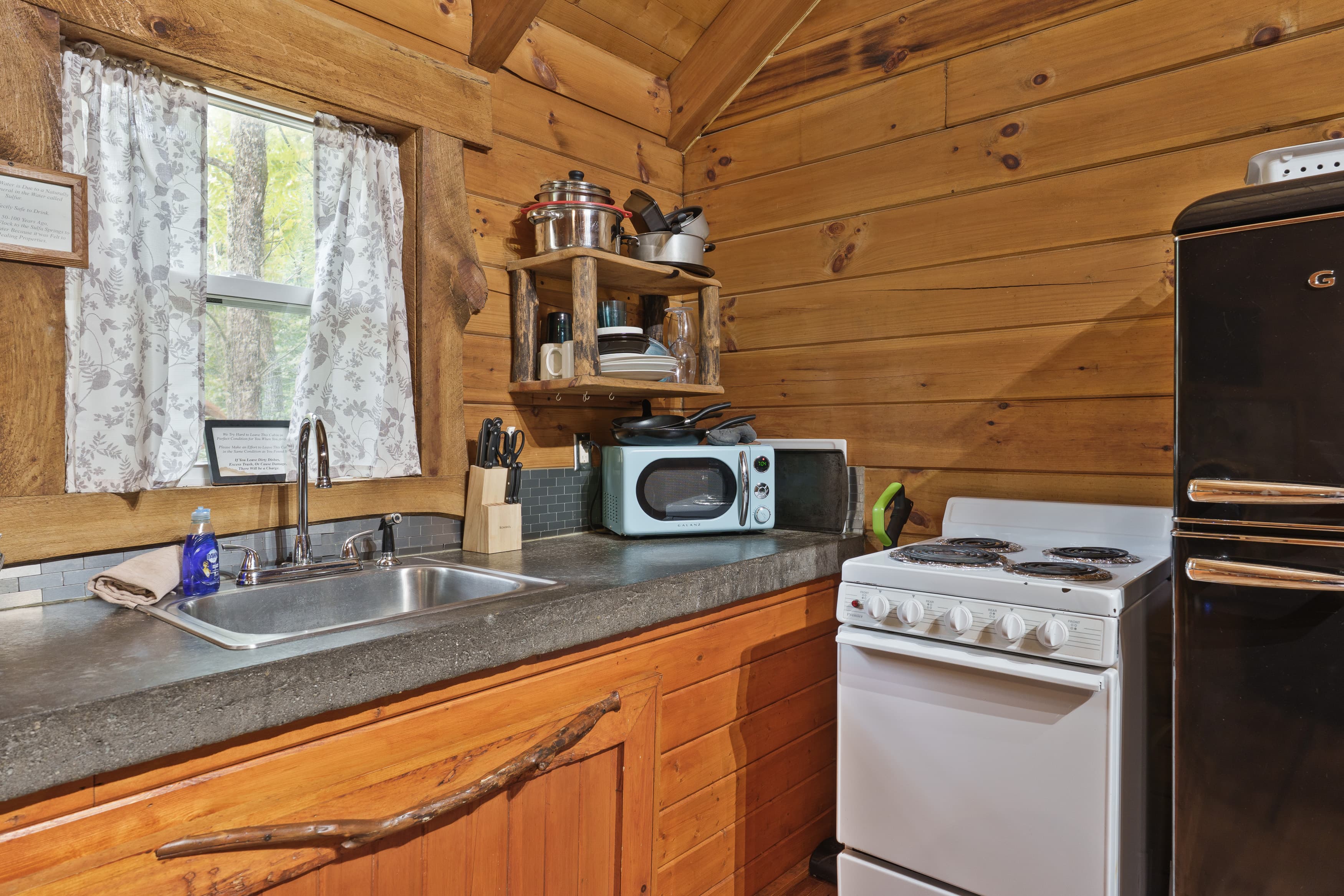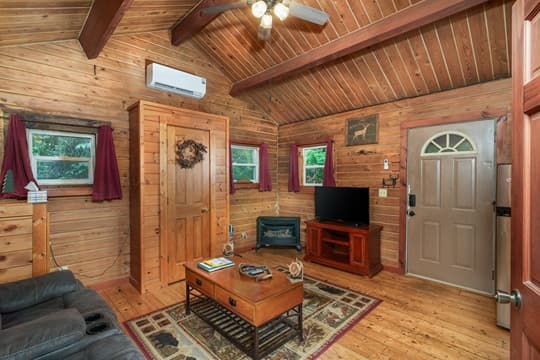 PET FRIENDLY. Bliss is a comfortable one level cabin for two guests that offers a queen size bed and walk in tile shower. The cabin features starlink WIFI, Smart TV with streaming only, stone electric fireplace and a standard kitchen with a drip style coffee maker. NOTE: Four-wheel drive recommended if available and is REQUIRED in inclement weather. DISCLOSURE: Outside security camera on the front porch.