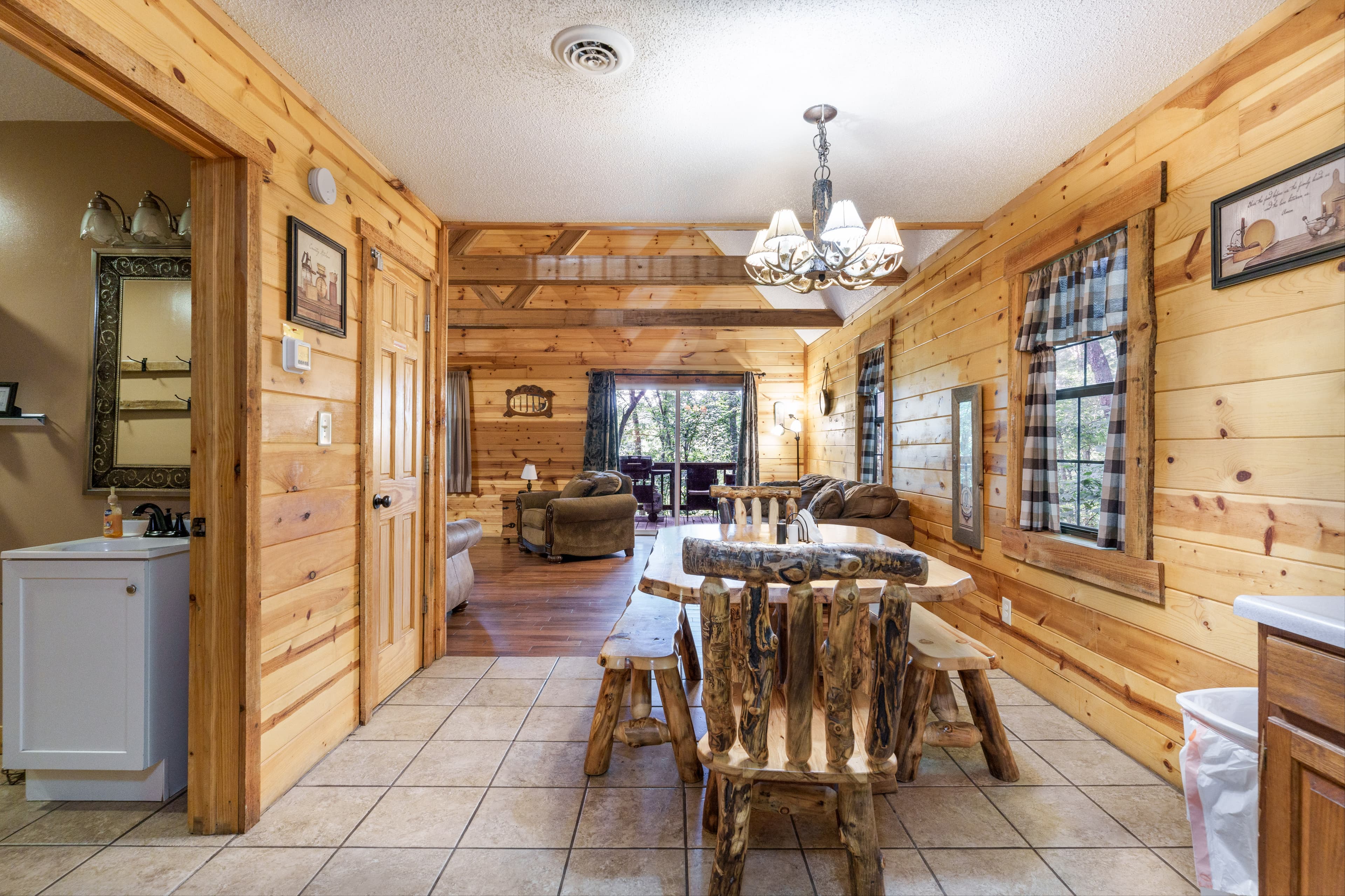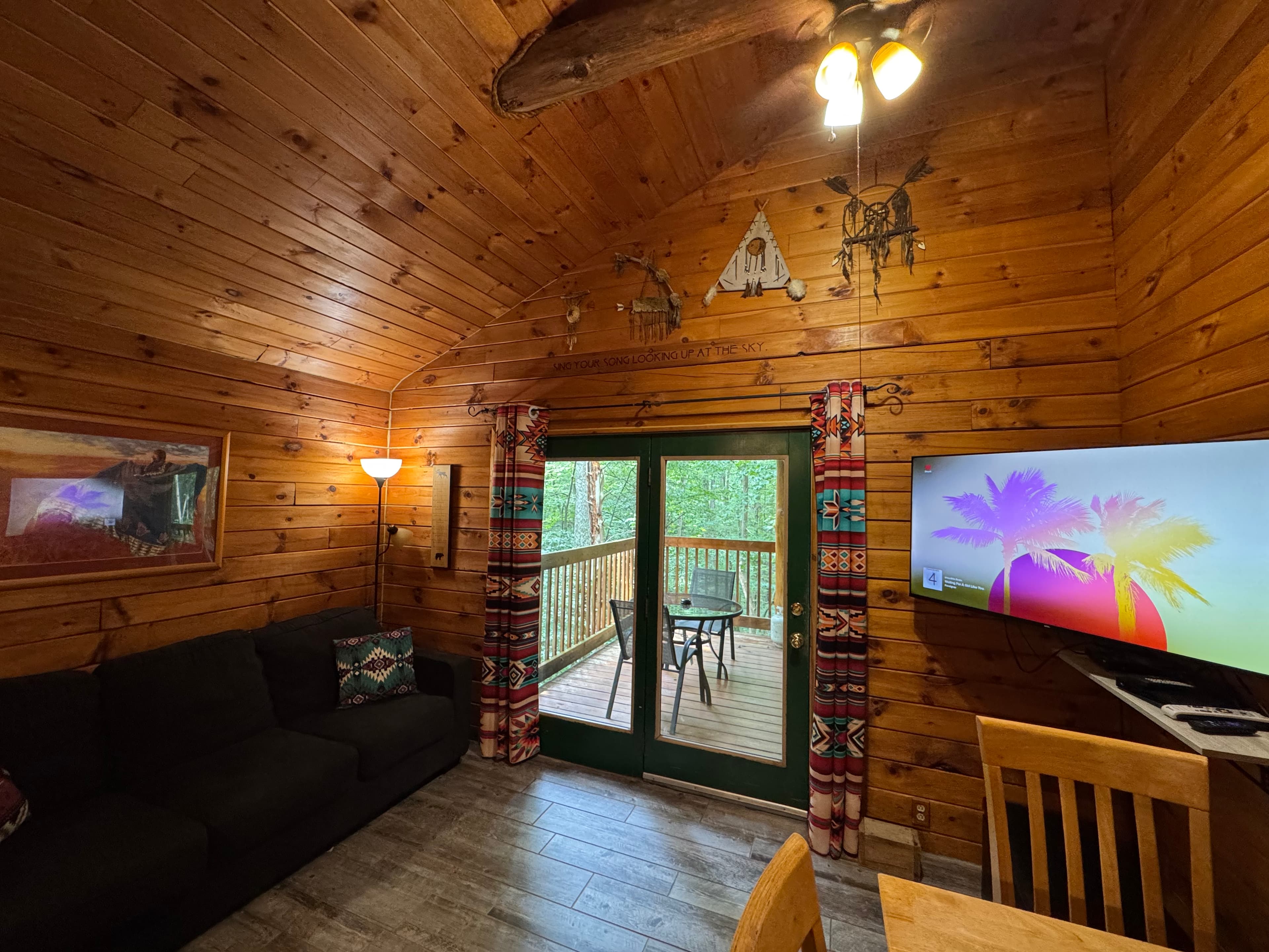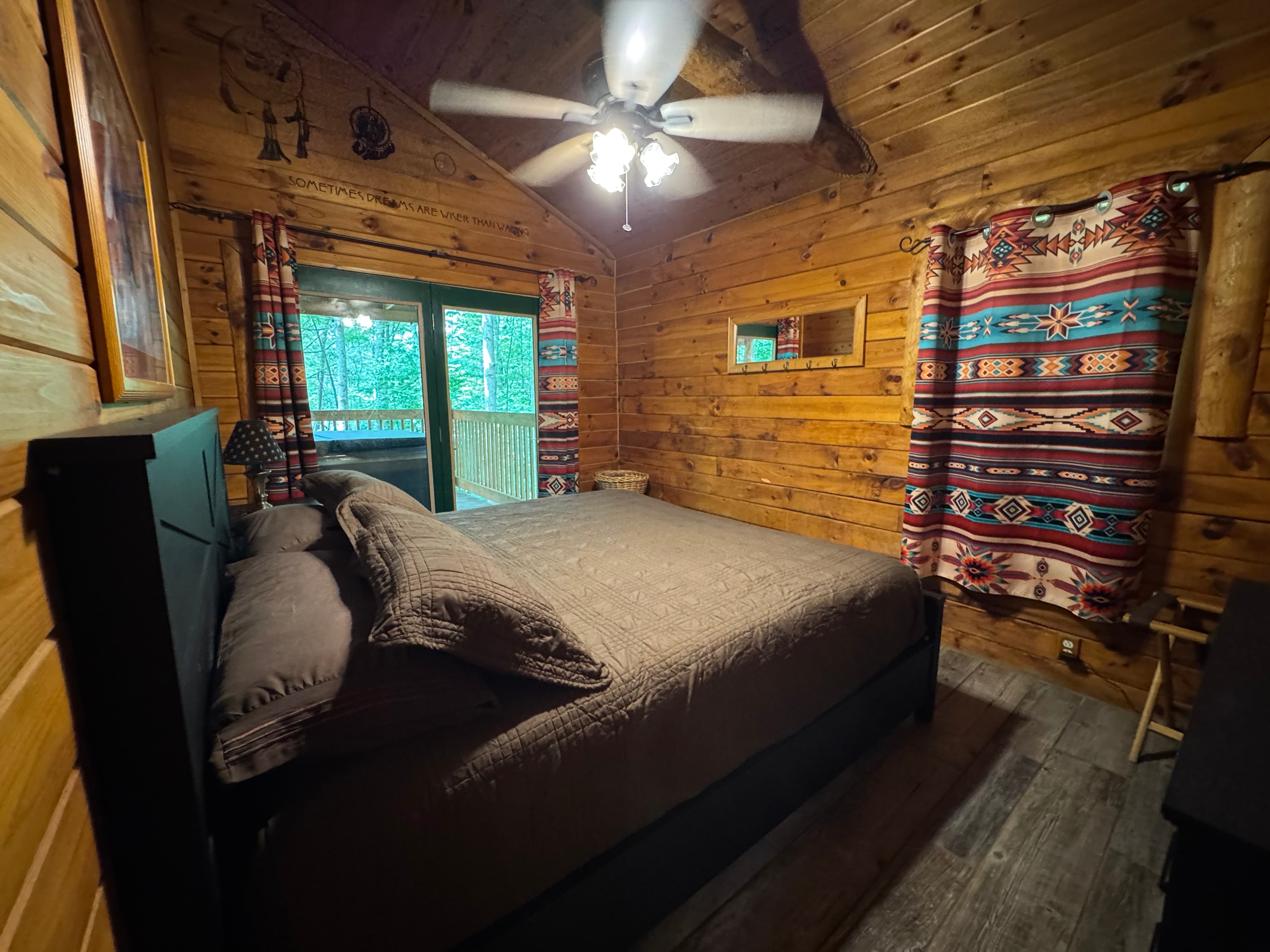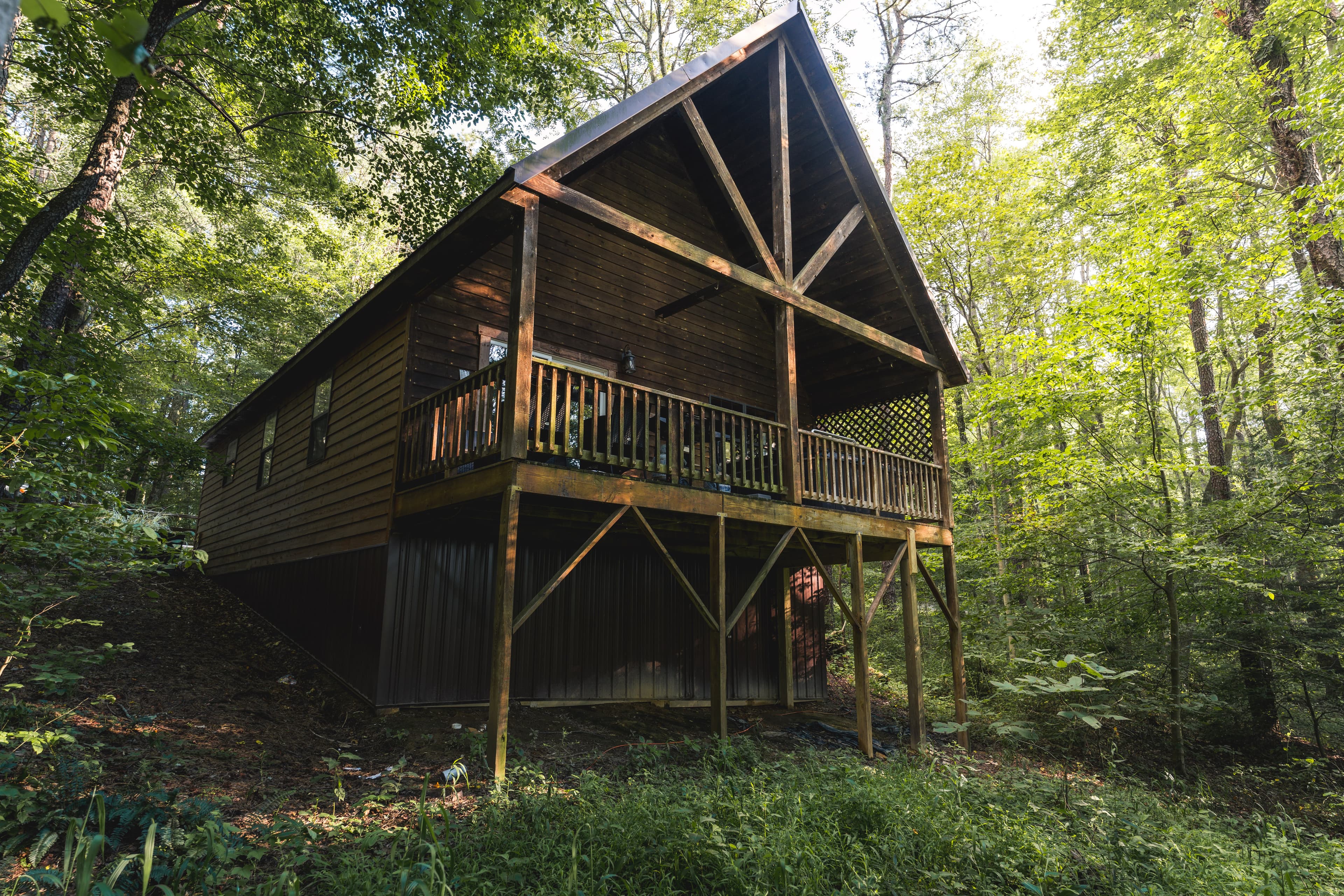 PET FRIENDLY. Enchanted is a cedar cabin on our Ash Cave property. The first floor of the cabin is handicap accessible with large walk in shower. Beautiful hand made aspen furniture throughout. Equipped with Starlink WIFI and a Smart TV with streaming only. The main floor has a private Queen size bedroom. Their is a King size bed in loft and two queen pull out sofa bed's in the living area for additional sleeping. The living area also has a wood burning fireplace for enjoyment in the colder months. The standard kitchen is stocked and has a Keurig Duo. The back deck offers a large hot tub, gas grill and seating. 4 wheel drive recommended/required in inclement and winter weather. This cabin is walking distance to our Ash Cave Day Spa, convention center and gardens.