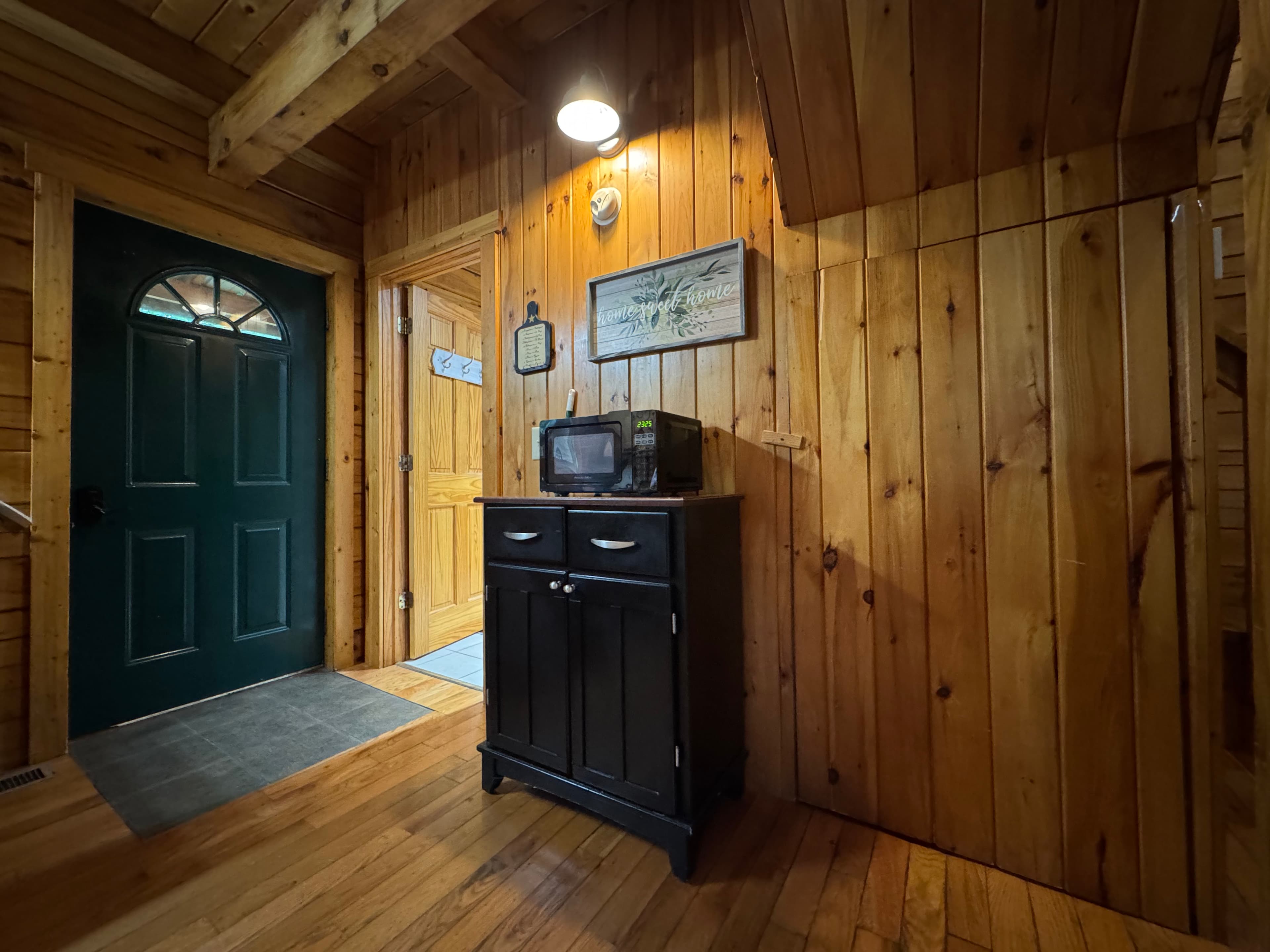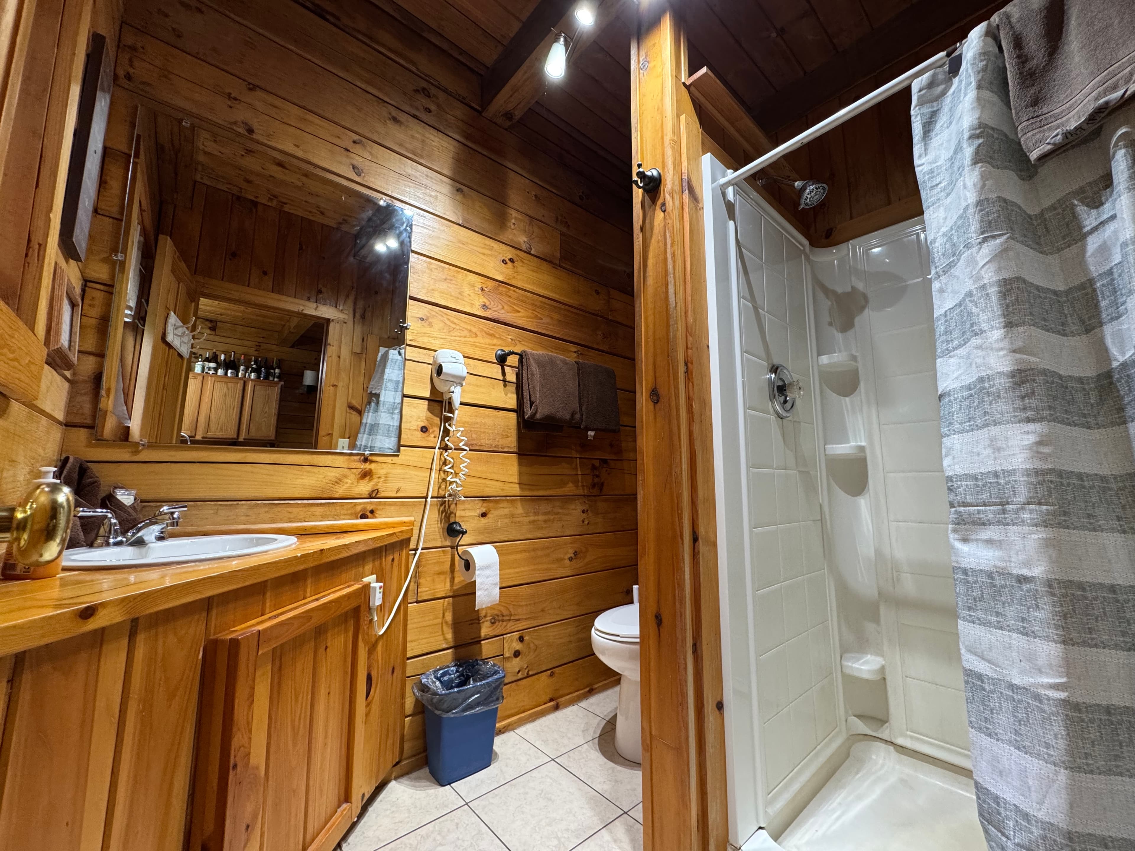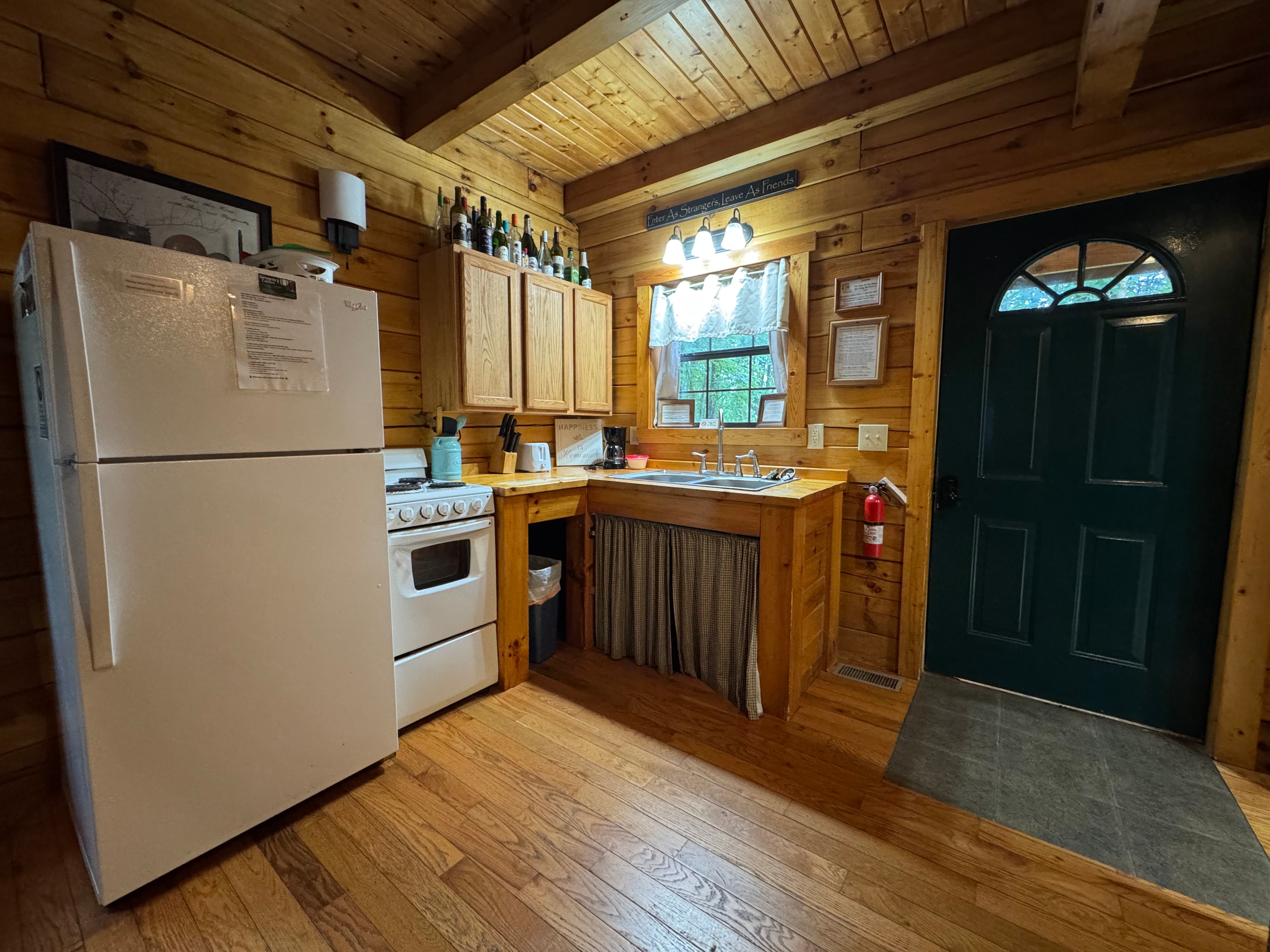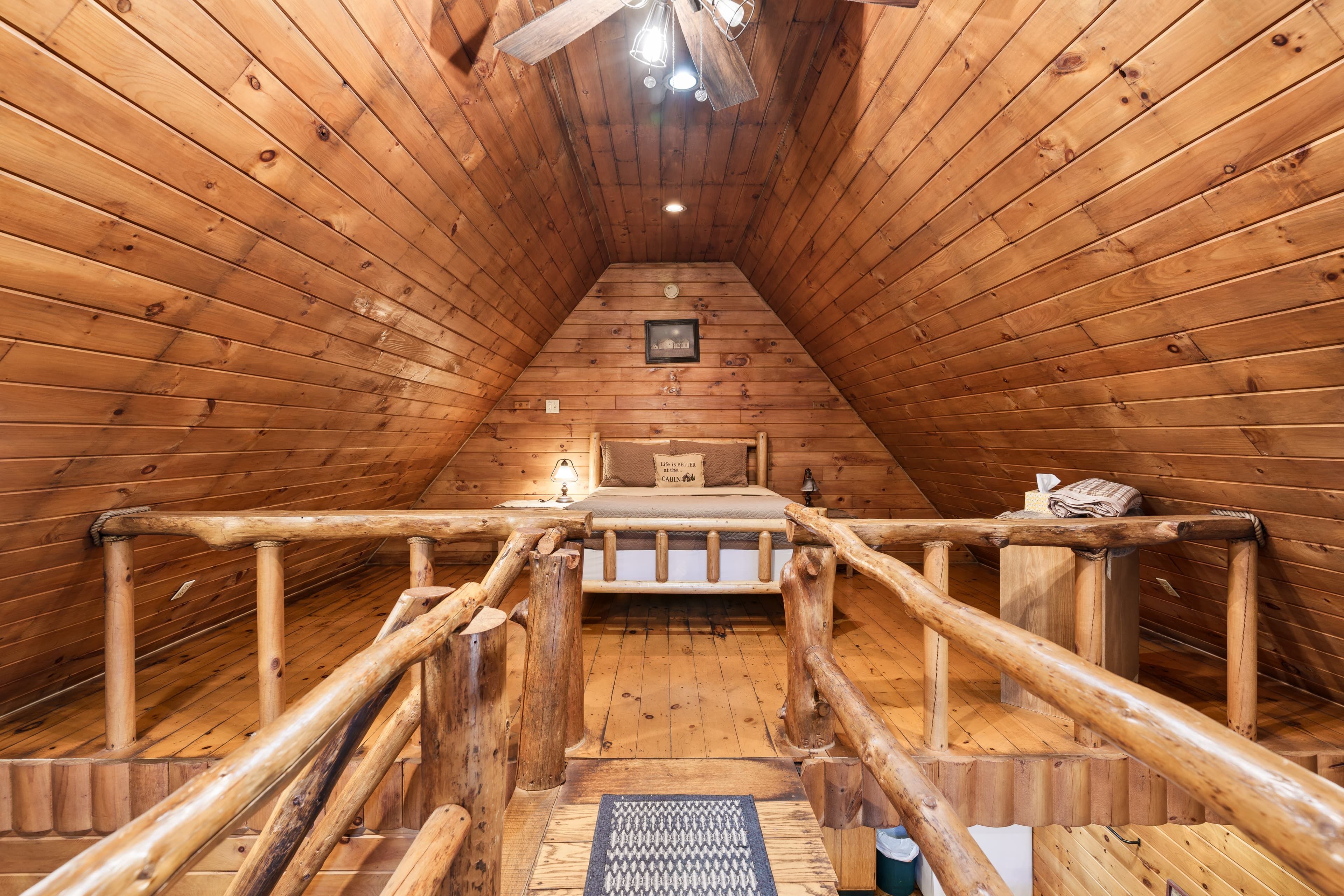 PET FRIENDLY. The Shawnee is a one bedroom cabin but has the capacity to fit 4 guests comfortably. There is a King bed in the private bedroom, and queen pull-out sofa in the living room. Other amenities for this cabin include a large hot tub, gas grill, satellite TV with DVD, air conditioning, electric fireplace, standard kitchen appliances and a Keurig coffee maker. This cabin is also great for animal lovers as it has a wildlife feeding station.