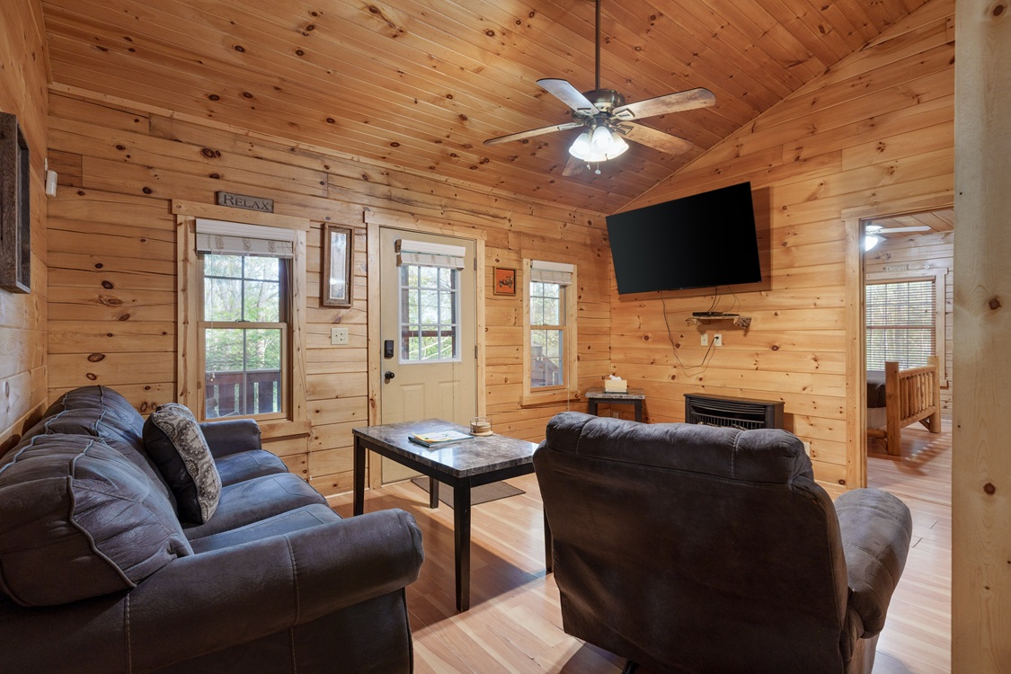 This 3 bedroom elevated cabin is Above The Rest, snugly sleeping 6 in 3 queen-size beds. This cabin also has 2 Bathrooms, Roku Smart TV, central air, ceiling fans, gas grill, towels, linens, standard kitchen and hot tub. This cabin is pet friendly and is our closest cabin to Old Man's CaveOld Mans Cave approx 2-3 miles away. NOTE: Four-wheel drive recommended in inclement weather.
