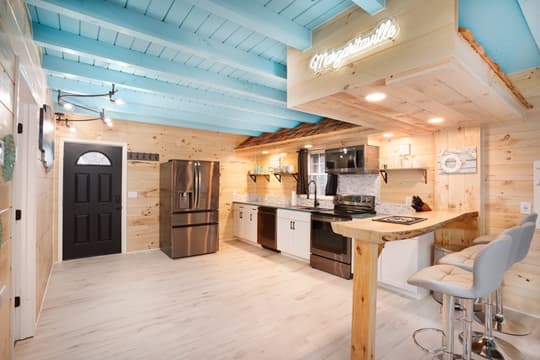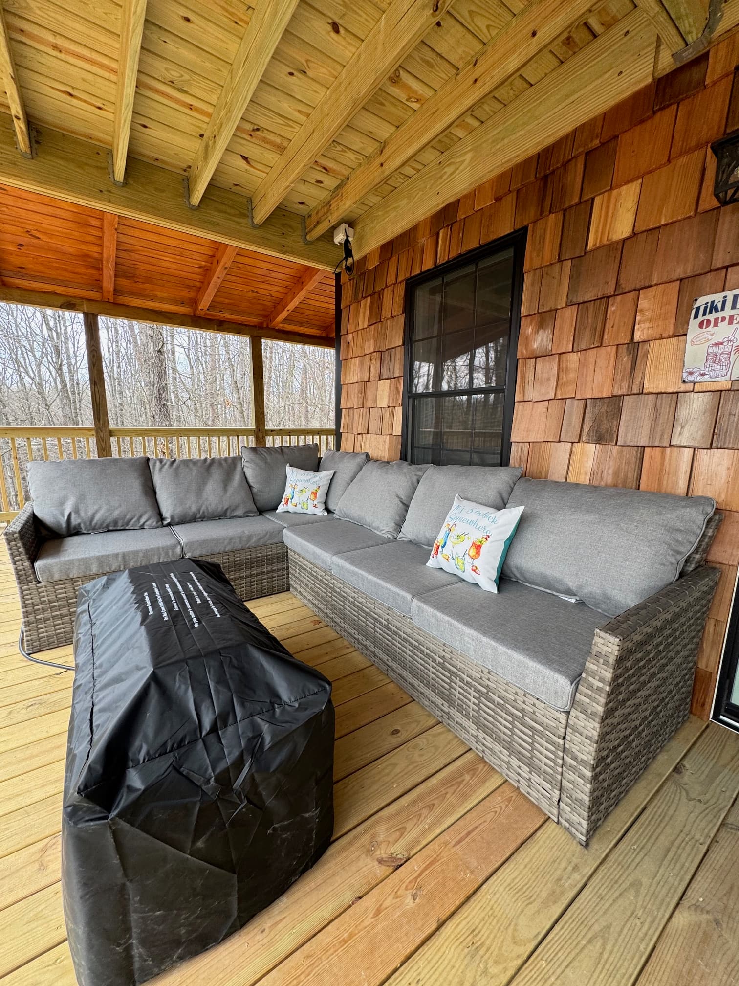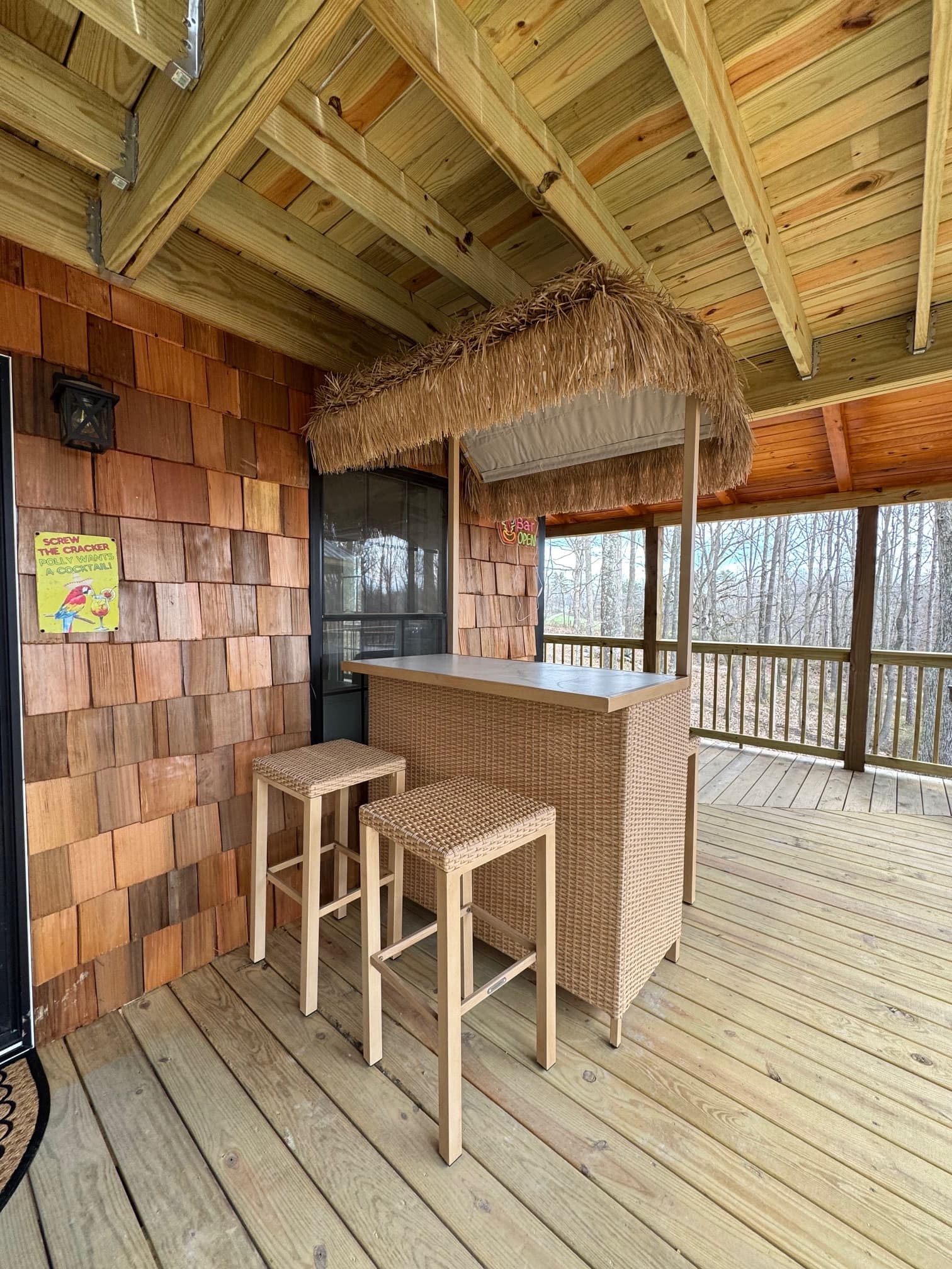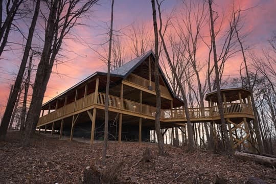 NOT PET FRIENDLY. This is a breath taking luxurious cedar cabin is nestled in the heart of nature. Margaritahills is the perfect getaway for two couples, where rustic elegance meets modern comfort. This cabin offers a snug yet spacious interior and a wrap around lower deck. The beautiful white tiled bathroom offers a soaking tub and a dual shower. The upstairs offers two private and spacious king bedrooms. Both bedrooms have their own private walk out decks. It has Starlink wifi and streaming, a washer/dryer and a dish washer for the extra convenience. *For safety reasons please note both bedrooms have a door to access their own upper decks. Disclosure: Outside motion activated security camera on front of the cabin.