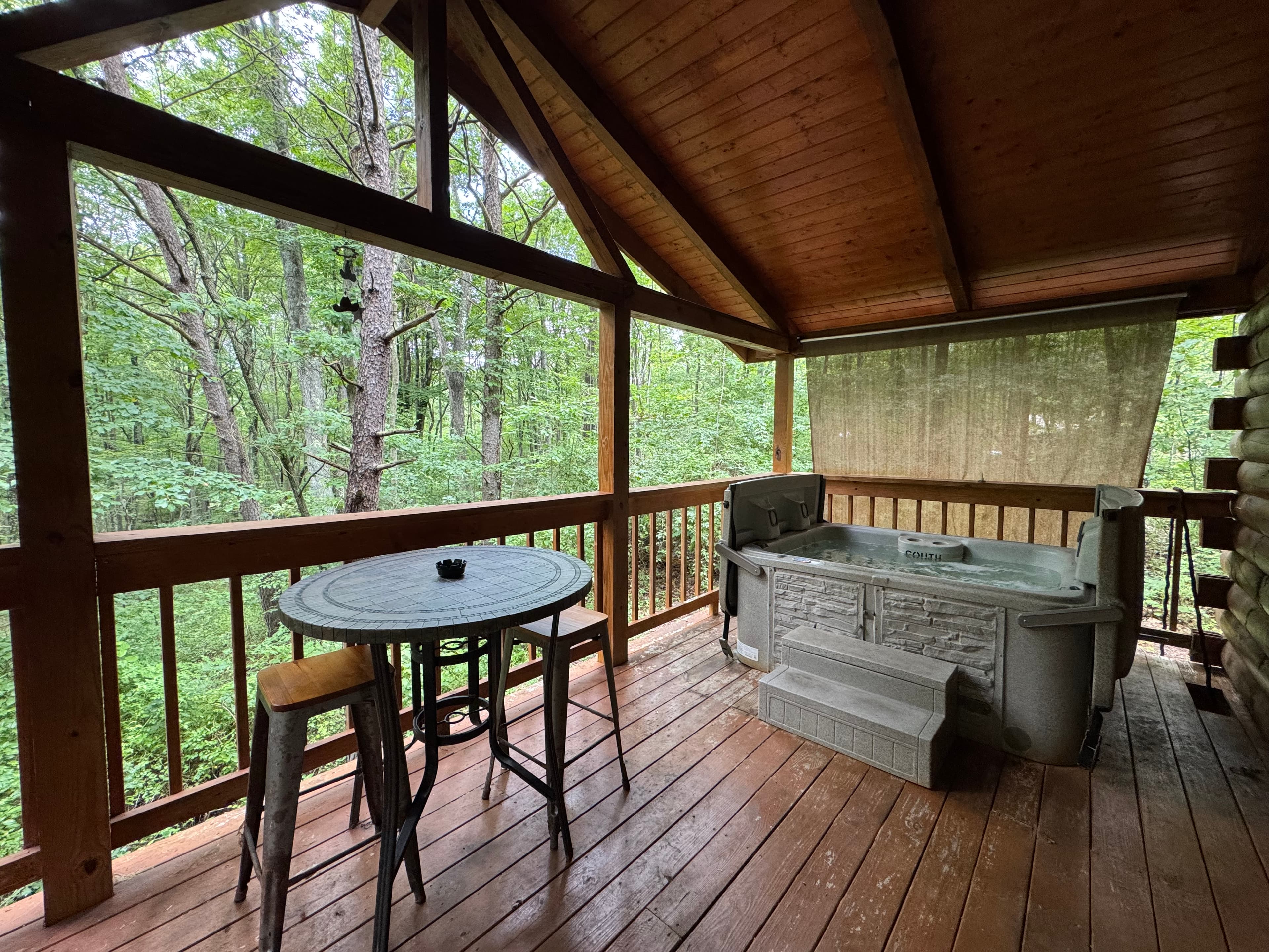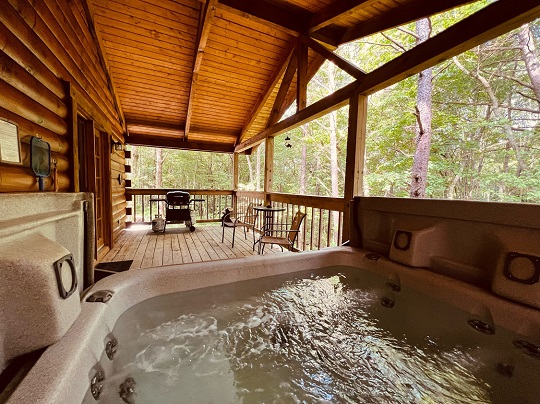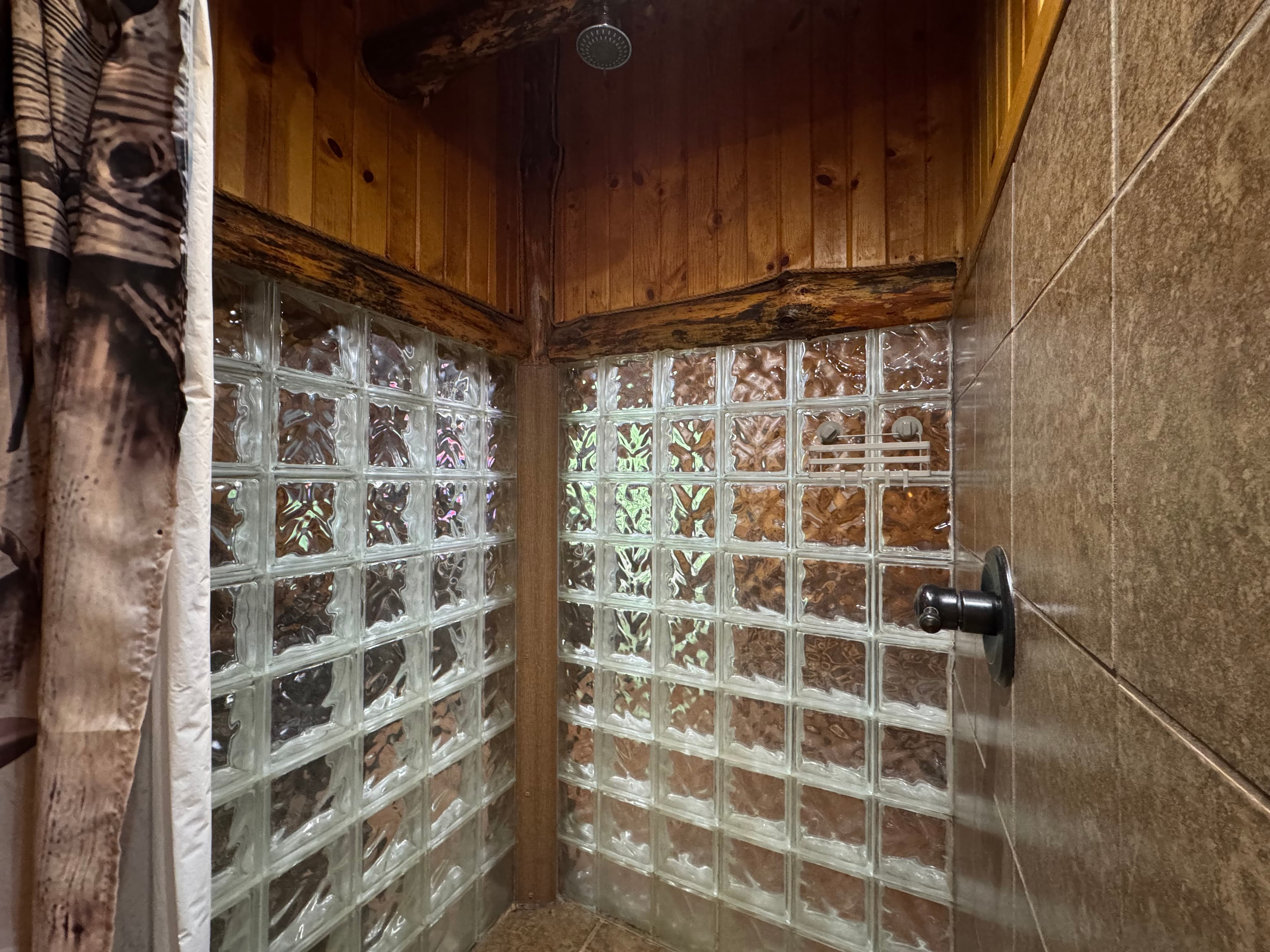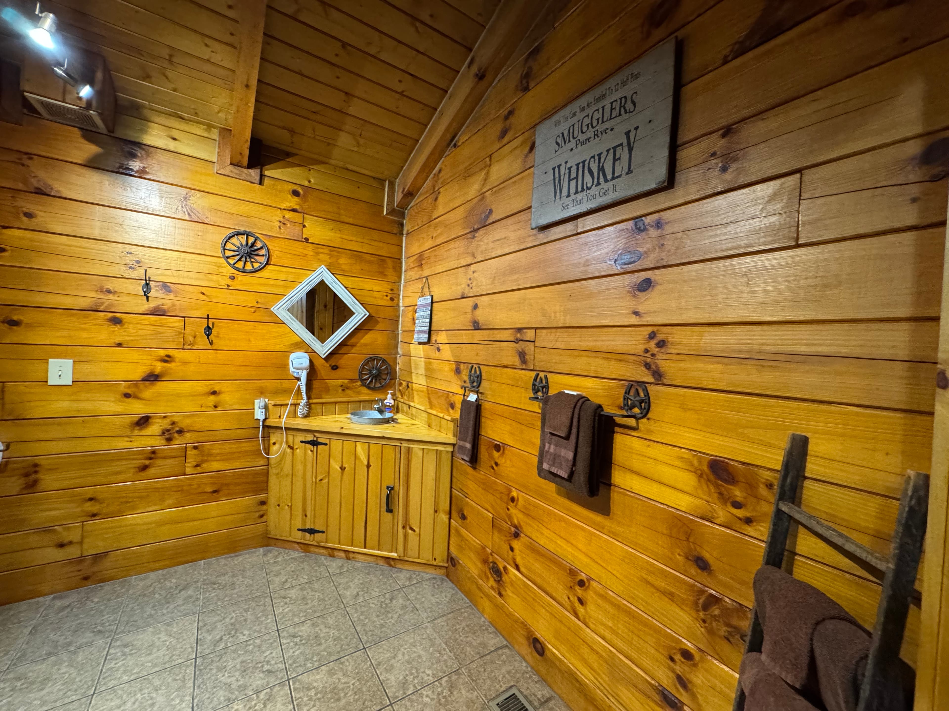NOT PET FRIENDLY. Whiskey is a newer cabin and its style fits its name. This abode displays an open floor plan and is a 2-person cabin decorated with whiskey barrels from the Jack Daniel's Distillery, and hand made Aspen queen bed with matching furniture. The Whiskey cabin also has a beautiful, large glass block walk in shower and stone electric fireplace creating a relaxing warm environment. Hot tub and gas grill.